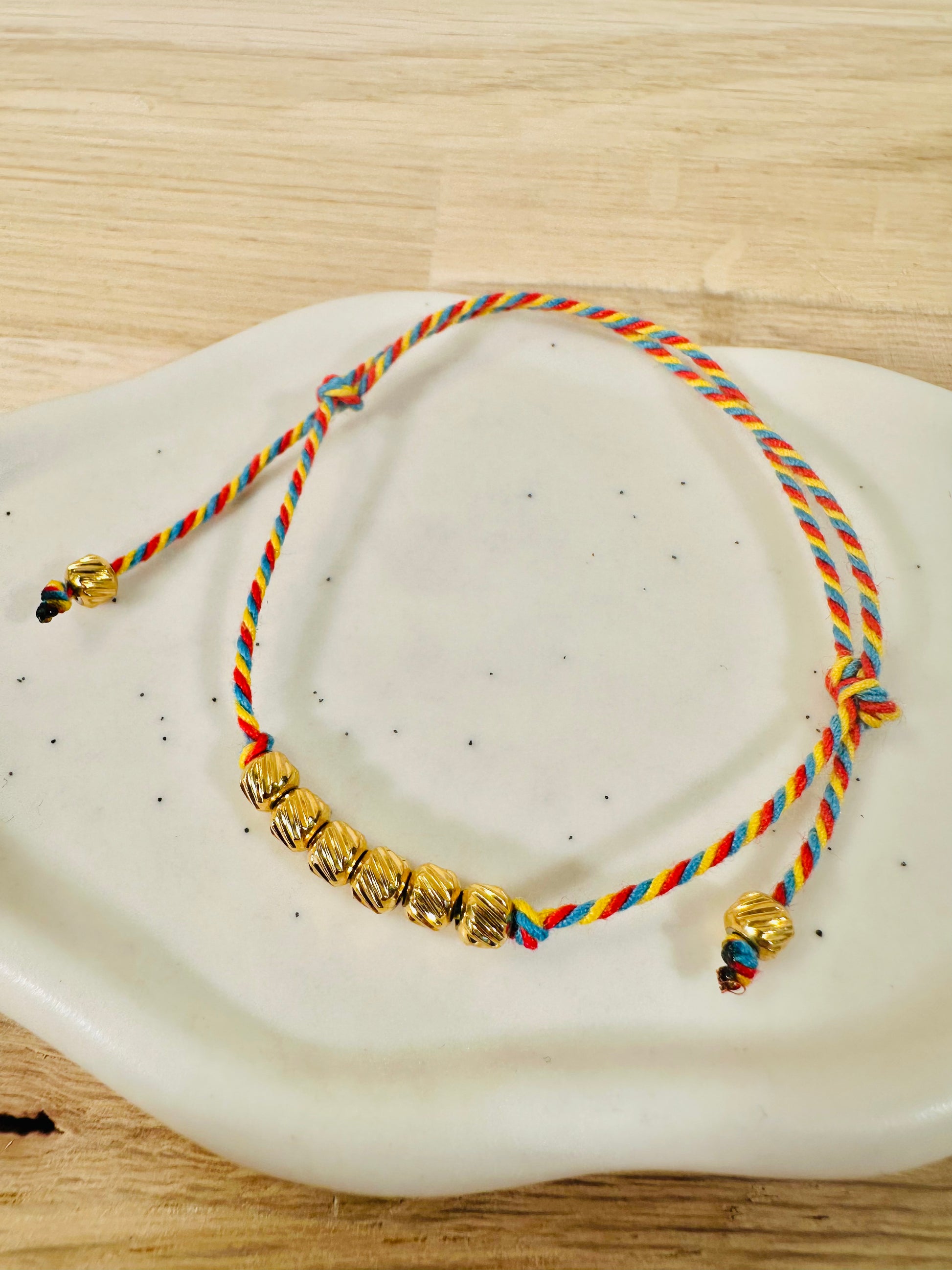 - d'un cordon rouge/jaune/bleu réglable,