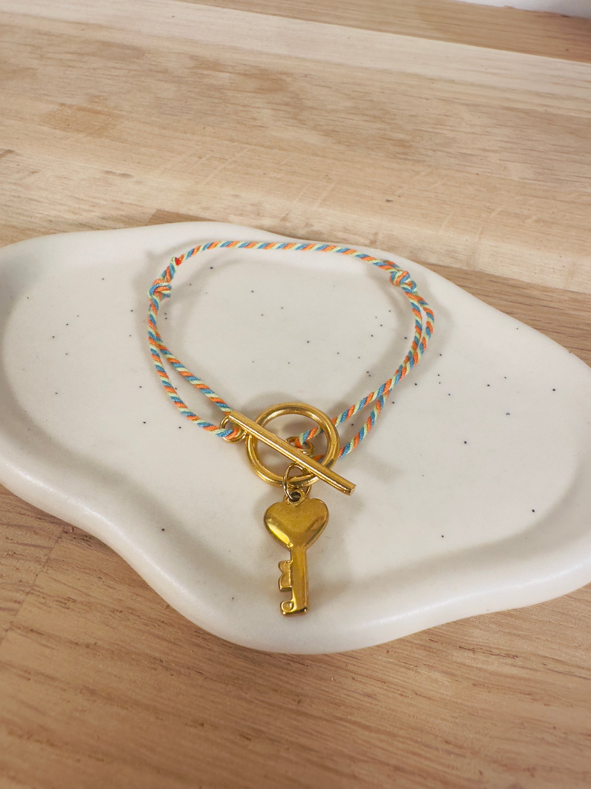 - d'un cordon orange/vert/bleu réglable,