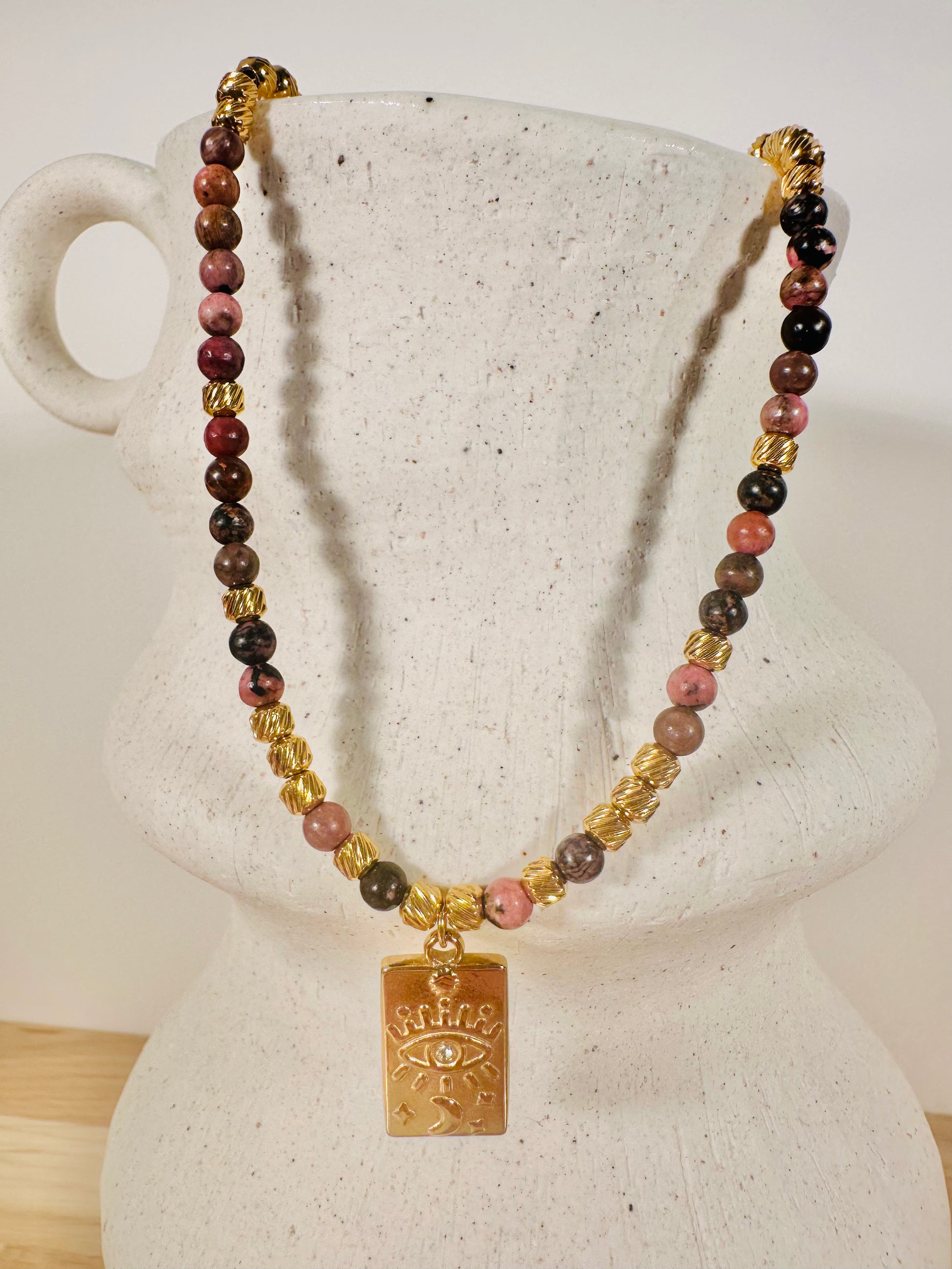 Breloques en acier inoxydable. Pierre Naturelle RHODONITE DE MADAGASCAR.