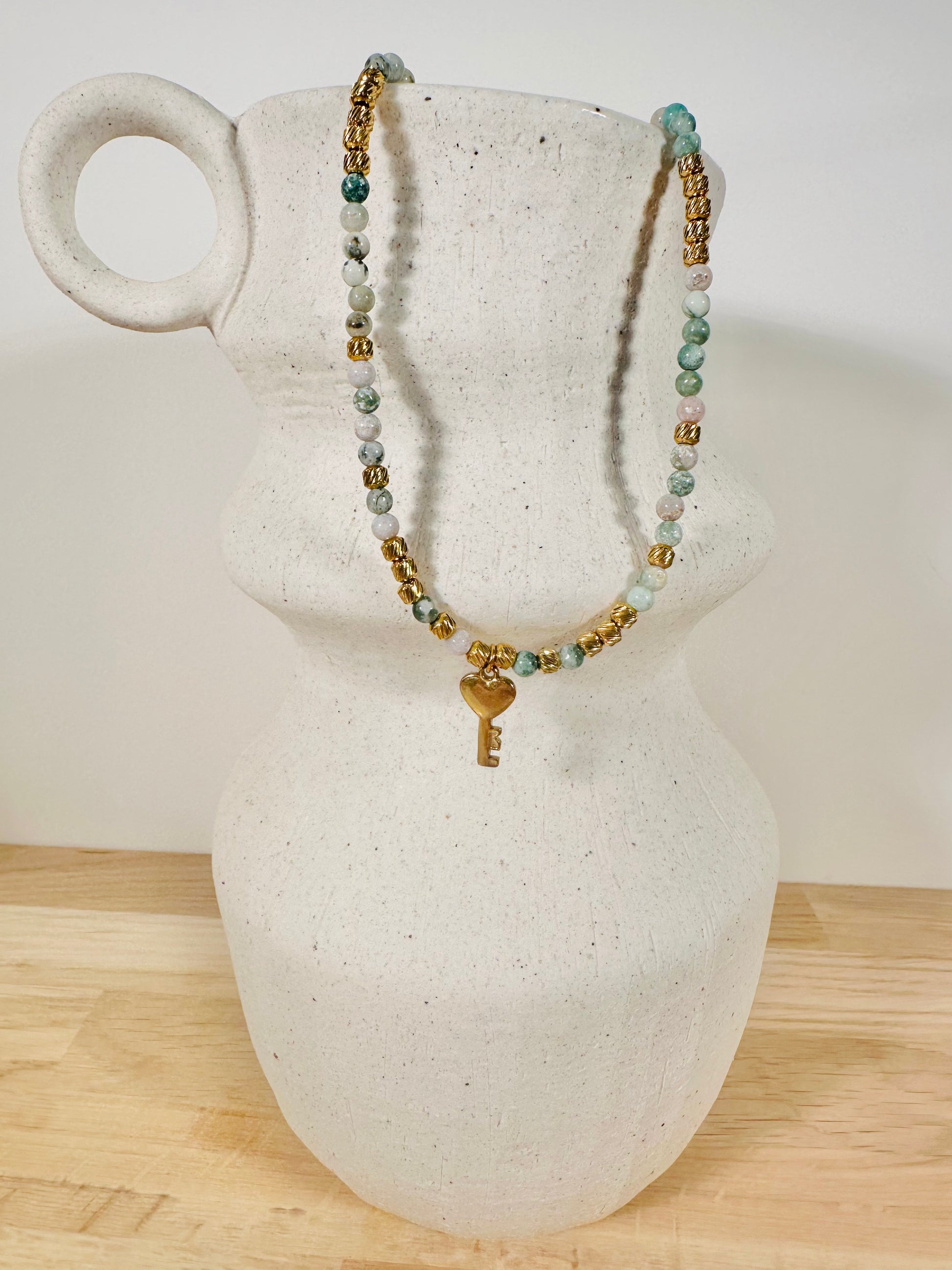Breloques en acier inoxydable. Pierre Naturelle AGATE ARBRE.